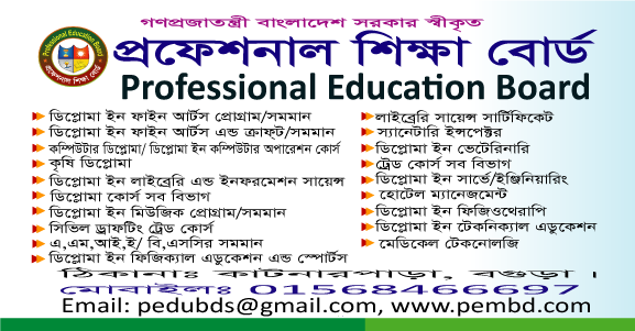 বাংলাদেশের শিক্ষা ব্যবস্থার একটি পূর্ণাঙ্গ ধারা কারিগরি শিক্ষা। সাধারণ শিক্ষার পাশপাশি সমান্তরালভাবে এটি বয়ে চলেছে দীর্ঘদিন ধরে এবং এ দেশের জন-মানসে তার স্থান করে নিয়েছে সুরক্ষিত ও সুদৃঢ়ভাবে। তথ্য ও যোগাযোগ প্রযুক্তি। “প্রফেশনাল শিক্ষা বোর্ড”। আমাদের অসংখ্য শিক্ষার্থী বিভিন্ন